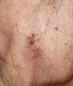 日光角化症は、紫外線でできる皮膚がんの代表的なものです。顔面や手背などの紫外線によく当たる部位に好発します。皮膚の表面がカサカサして赤くなり、かさぶたができるようになります。この状態が日光角化症です。日光角化症は、皮膚の浅いところ(表皮)にとどまっている初期の皮膚がんを指し、その状態では転移の心配などはありません。しかし、無治療で放置していると次第に隆起して、浸潤性の有棘細胞がんとなります。普通の湿疹や、しみと区別がつきにくいため、素人判断は禁物です。御心配な病変があれば、必ず皮膚科医にご相談ください。多くの場合、見た目だけでは区別しにくいため、皮膚の一部をとって調べる皮膚生検を行い確定診断します。