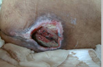 とこずれの経過はわかり易い呼び方で黒色期、黄色期、赤色期、白色期に分けています。黒色期は皮膚が壊死を起こし黒っぽいカサブタ状になっている状態です、黄色期は黄色い壊死組織があり皮膚の残骸が残っている状態です。赤色期は皮膚の再生がはじまる状態です。さらに白色期は皮膚が再生しつつある治る前の時期です。